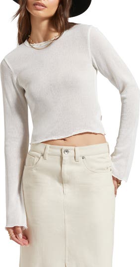 A semitransparent-knit design adds daring style to this long-sleeve top that's a layerable and versatile addition to your wardrobe.