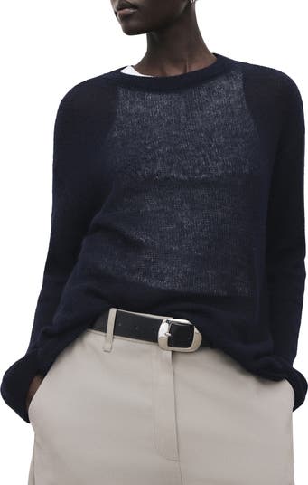 Airy open stitching adds a sheer effect to this cozy crewneck sweater that's ideal for layering.