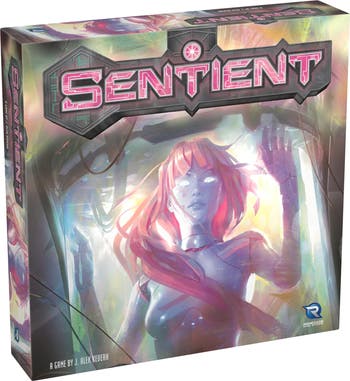 SENTIENT - The next great technological revolution is here. Sentient robots for information, transportation, industry, and more — all at our fingertips. Building them is the easy part now. Programming them has proven to be more complicated. There’s a handful of companies claiming success, but only one of these tech titans will emerge as the frontrunner in this exciting new frontier. Calibrate your neural network to program these bots correctly before rollout to the public. You’ll have to do this better than the competition if you want to attract the right investors and lead the sentient revolution! Revised edition including a new solo mode and a new game board! Play as a designer of sentient robots and their network! Calibrate your network to program these bots correctly before rollout to the public by manipulating dice and scoring points. Outsmart your competition, attract the right investors, and lead the sentient revolution!Quick Gameplay: Enjoy a dynamic game with a playtime of 30-60 minutes, making it perfect for both quick sessions and deeper strategic planning. AT A GLANCE: For Ages: 14+, Game Type: Strategy Game, Solo Mode Included, Players: 1-4, Playing Time: 30-60 minutes.