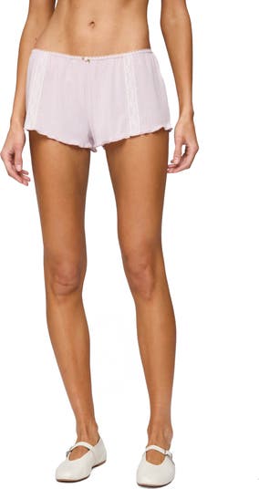 Clock-in for some serious sofa time in these featherlight and airy pointelle shorts finished with ripply lettuce-edge hems.
