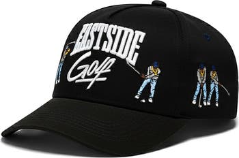 Fairway flair leads the round on this five-panel trucker hat as the brand’s Swingman lines up a drive along the side panels and bold high-contrast logo embroidery claims the front.