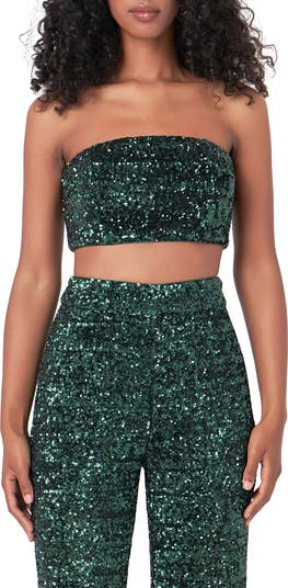 Sparkly sequins add glamorous party-ready vibes to this ultracute bandeau top made to show off some skin.