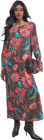 Make a statement at your next special occasion with this show-stopping sequin column midi dress from Warehouse. The striking pattern creates a mesmerising visual effect that catches the light beautifully with every movement. Style with knee-high leather boots for an edgy contemporary twist, or pair with strappy heels for classic evening glamor. The column silhouette skims the body for a flattering fit whilst maintaining comfort throughout your event.