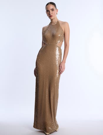 Sequin Cutout Halter Gown