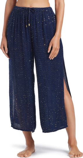 A dusting of golden sequins and metallic thread elevates breezy cover-up pants that twinkle with every step you take poolside.