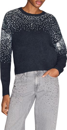 With sequins twinkling up top like constellations, this wool-enriched sweater brings a little night-sky magic to your cold-weather rotation. Dropped shoulders add an easy drape, while ribbed trim ensures just-right structure.