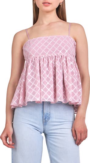 A sweet babydoll silhouette defines this flouncy top with a smocked back panel for a perfect fit and embroidered details all over adorned by shimmery sequins.