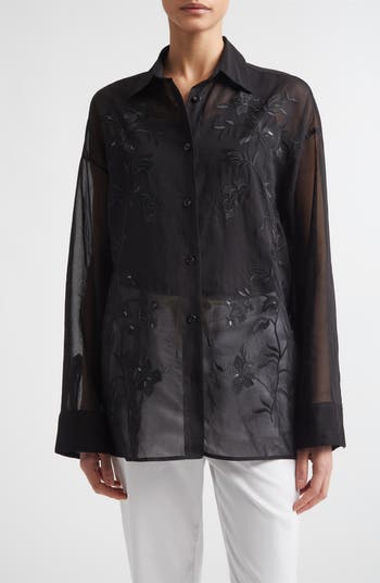 Tonal floral embroidery is accented with glinting sequins on this relaxed-fit shirt crafted from Japanese cotton gauze for a softly sheer effect.