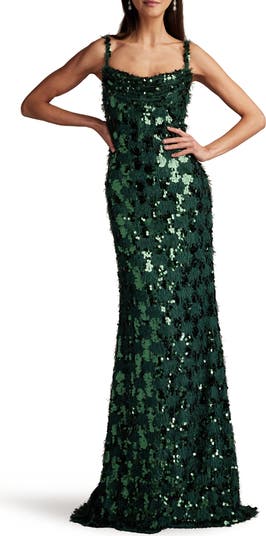 A stunningly verdant gown offers texture and shine in an utterly fabulous way.