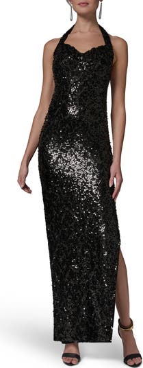 Step out in glamorous style with this stunning halter dress covered in shimmering sequins.