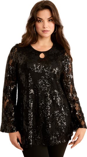 Get ready for a number of compliments at your next party with our Sequined Keyhole Blouse. The sequin mesh and keyhole detail add a touch of sparkle, while the shirring at the shoulder and neckline add a bit of feminine flair.