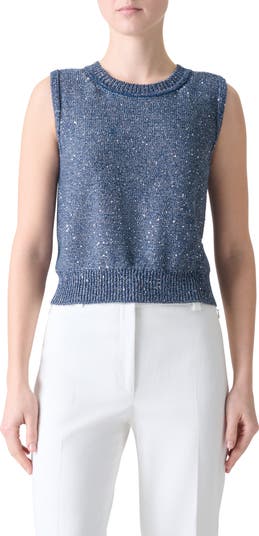 Little sequins lend the merest hint of sparkle to a linen-blend sweater-vest that makes layering a breeze.