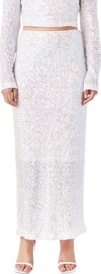 Make a sparkling statement at your next soirée in this memorable skirt wrapped in twinkling sequins.