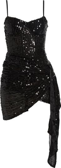 Newly appointed Creative Director Nicholas Aburn continues in the brand's glamorous tradition with this sequin-dazzled minidress crisscrossed by an elegantly draped sash that gently sways with your every fabulous step.