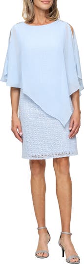 Sequin Open Stitch Cocktail Dress with Cape Overlay