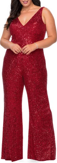Sequin Plus SIze Jumpsuit with Plunging Neckline