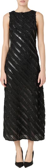 Sparkling diagonal stripes illuminate this textured maxi that's full of evening-out elegance.