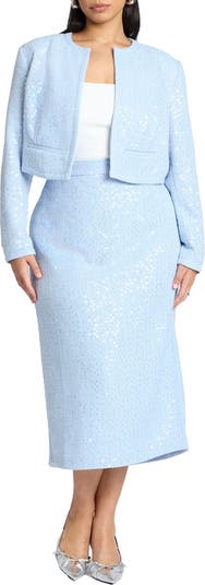Add texture and shine to your look with this sequin tweed midi skirt. A tailored fit and back slit balance glamour with wearability.