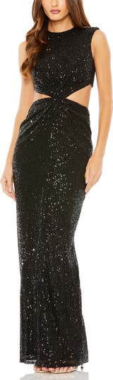 Sequin Twist Cut Out Open Back Gown