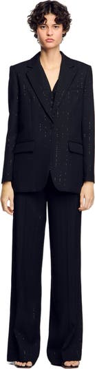 Striped suit jacket with tone-on-tone sequins, featuring long sleeves, a lapel collar, button fastening, flap pockets and a welt pocket on the chest. This jacket matches the trousers, and the top