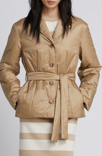 Keep cozy while looking polished and put together in a belted jacket insulated with a mix that includes luxe cashmere and warming wool.
