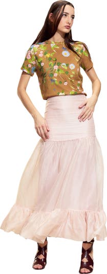 Silk organza for all summer long. The fitted waist and tiered bottom ruffle brings movement with every step.
