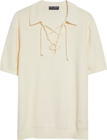 Serafino Lace-Up Cotton Blend Polo Sweater