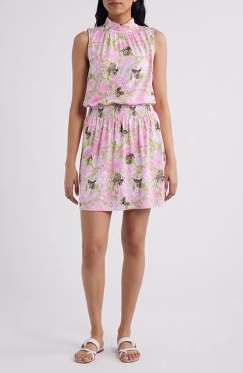 A smocked waist hugs your curves in this brightly printed blouson dress made with remvoable shorts for added coverage.