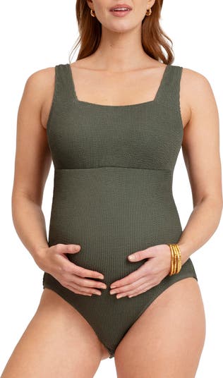 Take the bump for a dip in this textured swimsuit that has lots of stretch to grow with you and snap back into shape after baby's arrival. An interior shelf bra with padded cups offers extra support.