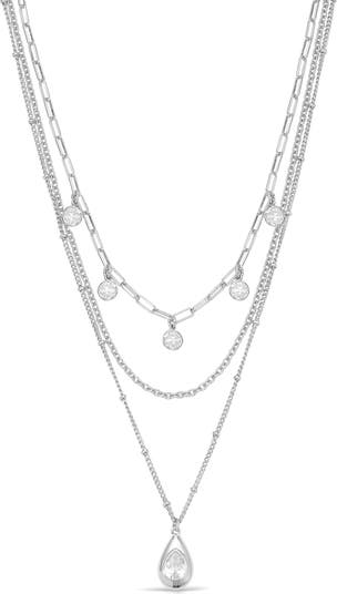 Ettika takes the work out of creating the perfect necklace stack with this pre-layered style that has three mixed-chain-link strands, two of which sparkle with bezel-set cubic zirconia.