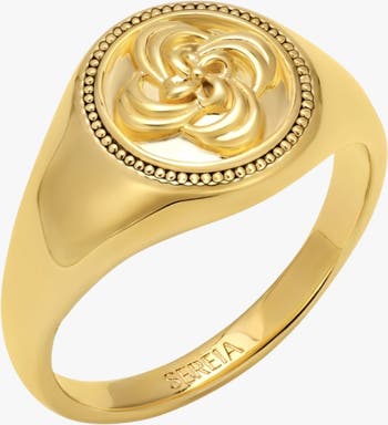 A bold signet ring with a unique raised-dot texture. Featuring Sereia's monogram at the center, this piece is a refined statement of modern elegance