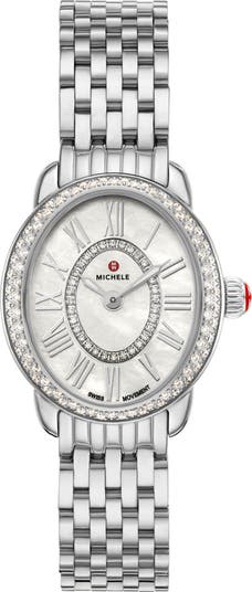 If the sparkle of diamonds isn't enough to illuminate the dial, the luminous hands ensure you'll know the time at any light level when you wear this classically elegant oval watch featuring Roman numeral markers rounding the mother-of-pearl dial.