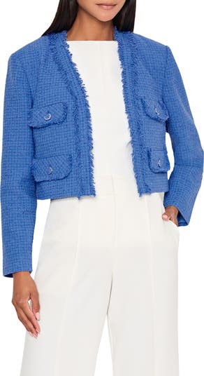 Textured in tweed and traced in flickers of fringe, this cotton-forward jacket is ready to finish a workday look or elevate a weekend one.