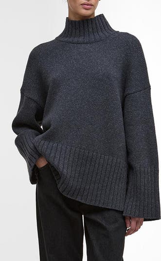 Slouchy and relaxed for the way you live now, this heathery turtleneck sweater is knit from a comforting wool-and-cotton blend.