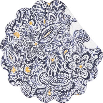 Transform any dining room or kitchen with the depth and detail of the Serena collection . An elegant floral paisley pattern in navy and yellow combines classic and contemporary styles to create a versatile look for any day of the year.