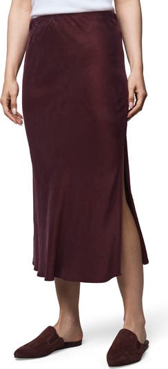 The beloved midi skirt comes through in lightly lustrous matte satin, served with the added sass of a daring side slit.