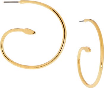 Slender snakes coil to shape the statement-making silhouette of these shiny hoop earrings.