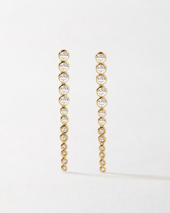 Serve timeless elegance with our Serena Tennis White Drop Earrings. Drops of rich Cultured White Sapphire in 18k gold plated recycled sterling silver.