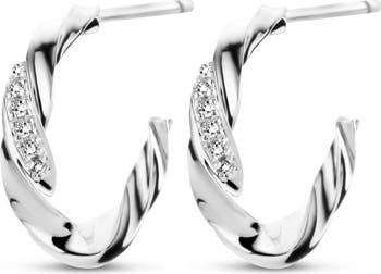 The Serendipity Hoops by DPT Antwerp showcase 12 white diamonds along a twisted silhouette. Made in Sterling silver with your choice of finish, they offer a playful yet polished touch to your jewelry wardrobe.