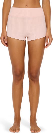 A supersoft rib brings easy comfort to lounge-ready shorts finished with lettuce-edge trim.