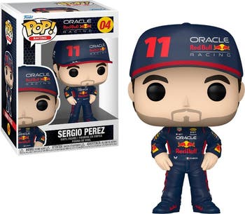 Sergio Perez Oracle Red Bull Racing (Formula 1) Funko Pop! This vinyl figure measures 3.75 inches tall and comes packaged in a Funko Pop window display box.