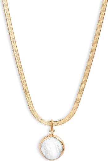 This pretty, minimalist necklace handmade in 24-karat-gold plate is beautifully anchored by a bezel-set coin pearl.