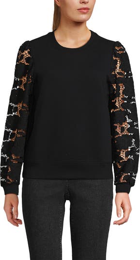 Your go-to whether you're working out or chilling out. It still offers the ultimate comfort, and relaxed fit you know and love, but now it also features lace sleeves for an added touch of fashion. Whether you're elevating your gym look or wearing it to lunch, it's a reliable choice for effortless style that easily pairs with joggers and jeans.