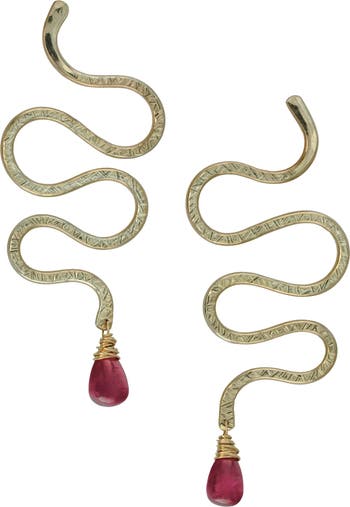 Forged serpent earrings with ruby drops. A study in movement, meaning, and strength symbolizing wisdom and transformation.