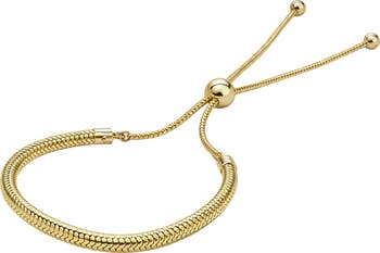 Serpentine chain links bring a sensual look and flexibility to this adjustable slider bracelet crafted from sterling silver plated in 18-karat gold.