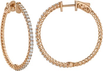Elegant 14K Gold earrings made with beautiful craftsmanship and adorned with 2.1 carats of VS1 diamonds. Comfortable to wear with a diameter of 3.6 cms Diamond carat weight may fluctuate by 0.05 cts.