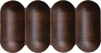 - An elegant serving dish featuring a rich walnut finish and four distinct sections