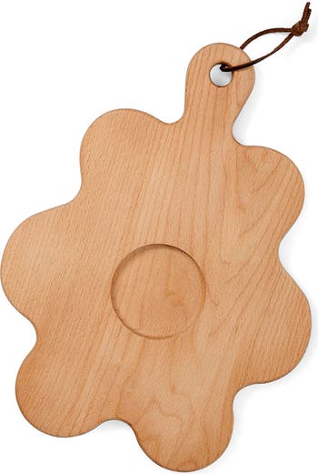 Permission to play with food is granted when you have this wood board cut in a fun floral shape with a center indent to hold a ramekin or small bowl. Cut and prep food on one side and serve on the other.