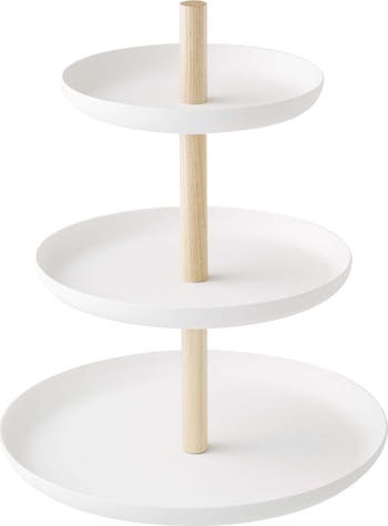 Whether you're hosting a party or need a presentable counter top fixture for all your favorite baked goods, sweets, treats and finger foods, this minimal, three-tiered serving stand rises to all occasions. Each of the three white coated steel trays have lipped edges to keep snacks from sliding off.