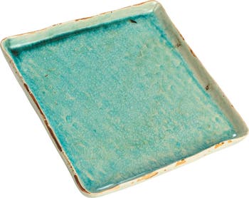 - A stunning stoneware serving tray with a square shape and a reactive crackle glaze in aqua color
